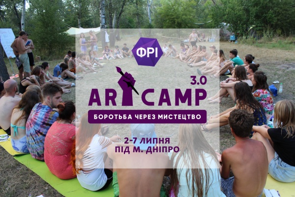 Мистецький наметовий ФРІ-табір ART Camp 3.0 відбудеться 2-7 липня під смт. Обухівка біля річки Оріль. На ньому лектори розкажуть, як привертати увагу до важливих суспільних проблем, висловлювати думки та свою громадську позицію за допомогою мистецтва.